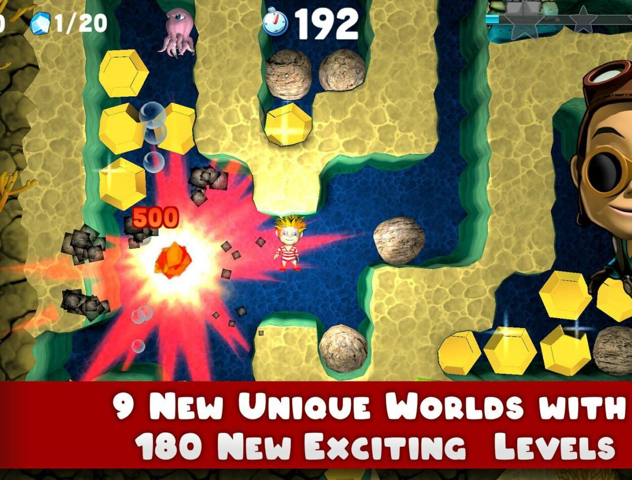 Boulder Dash® Deluxe™ takes you, together with the game character called Rockford® into a myriad of new and exciting challenges. Dig through spectacular caves with 3D elements. Avoid falling boulders. Collect valuable gems and avoid nefarious enemies along the way. Discover treasure chests with rare collectibles and strong power-ups. Boulder Dash® Deluxe™ includes 180 new exciting and unique levels. Plus, dig through 9 brand new worlds with high-end graphics and their own textures. Dive into the Classic 1984 World with its caves or enjoy The Liepa World; The creator of the original 1984 Boulder Dash®, Peter Liepa designed the set consisting of 20 of the most mind-bending levels. And, if that’s not enough, 15 new special opponents ranging from Octopus to Snow Tiger will challenge you. Boulder Dash® Deluxe™ truly is the pinnacle in 35+ years of Boulder Dash®!