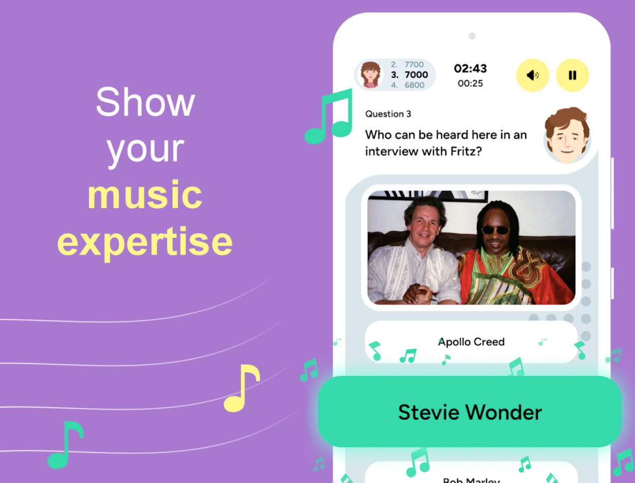 The app not only offers classic quiz fun, but also a comprehensive insight into the music history of the last five decades. Fritz Egner, who has conducted over 500 interviews with the greatest music legends, shares his personal experiences and unique insights with you. Experience interviews with stars such as Bob Marley, Janet Jackson and Muhammad Ali, which Fritz Egner has collected and digitized over the years.